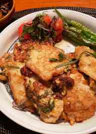 疲労回復レシピ1 タコねぎチャーハン 鶏むね肉の大葉巻き梅ソース